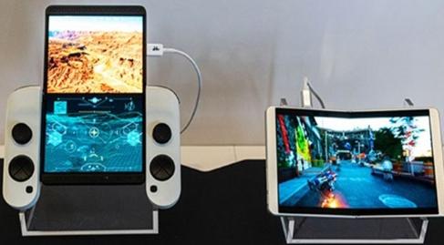 삼성디스플레이는 두 번 접는 더블폴딩, 위아래로 늘어나는 슬라이더블 패널을 공개하고, 평소에는 스마트폰 크기로 사용하다가 게임중에는 대화면으로 늘릴 수 있는 게임전용 폴더블 제품 등을 내보인다.