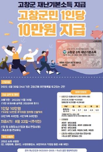 고창군, 82억원 규모 재난지원금..22일부터 지급 시작