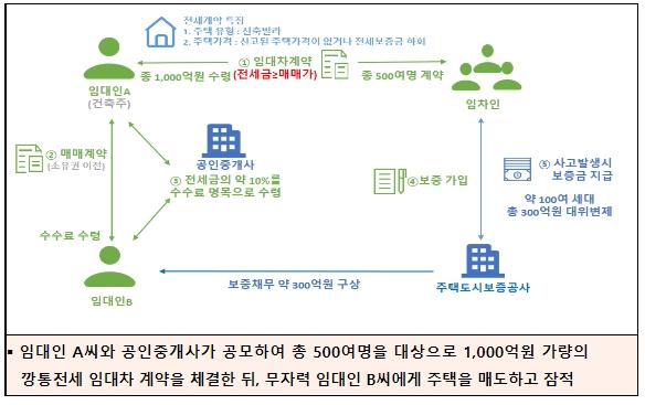 국토교통부는 전세사기 특별단속을 위해 주택도시보증공사(HUG),한국부동산원과 합동으로 전세사기 의심사례들을 분석하여 경찰청과 공유하였다.