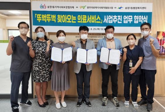 [중앙뉴스라인, 김안나기자] 광주광역시 광산구 송정1동 지역사회보장협의체가 25일 송정1동, 광주의료복지사회적협동조합과 ‘뚜벅뚜벅 찾아오는 의료서비스’ 업무협약을 체결했다.
