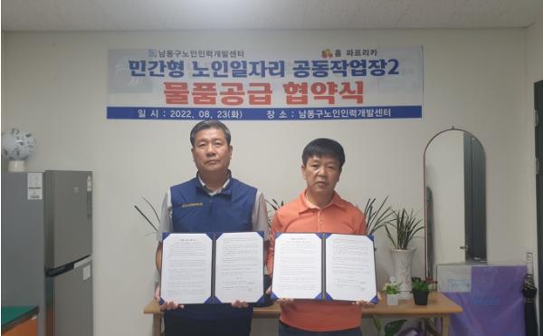 [중앙뉴스라인, 송상교기자] 남동구노인인력개발센터는 지난 23일 홈파프리카와 민간형 노인일자리 활성화를 위한 물품공급업무 협약식을 가졌다고 30일 밝혔다.