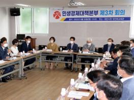 시는 30일 김광진 문화경제부시장 주재로 광주대인시장 상인회교육관에서 광주민생경제대책본부 회의를 열고 한국농수산식품유통공사 광주전남본부, 소상공인시장진흥공단 광주호남지역본부, 중소벤처기업진흥공단 광주지역본부, 광주신용보증재단, 5개 자치구 등 23개 유관기관이 참석한 가운데 물가안정?민생대책을 논의했다.