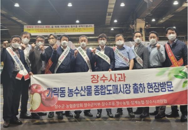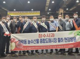장수군·농협관계자 “장수사과 가락동 도매시장 출하현장 방문”