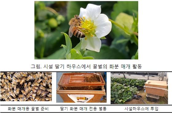 딸기는 꿀벌이 없으면 상품성 있는 과실이 달리지 않아 꽃이 피는 10월 중순부터 화분 매개용 벌이 공급되어야 한다.
