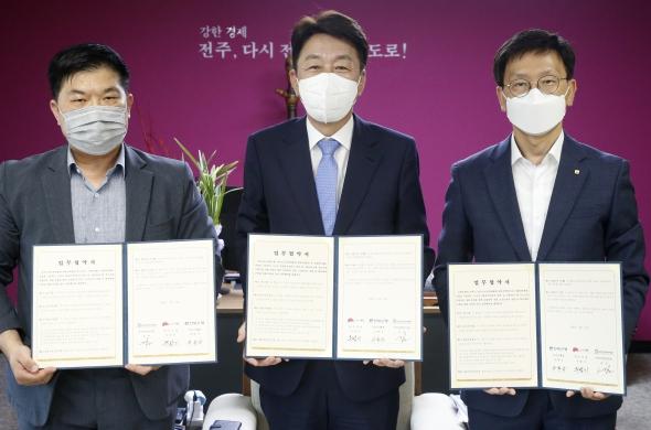 전주시는 14일 전주시장실에서 전북은행, 한국노인인력개발원 전북지역본부와 금융취약계층 경제적 자립 지원을 위한 ‘시니어 금융복지상담가 업무협약’을 체결했다.