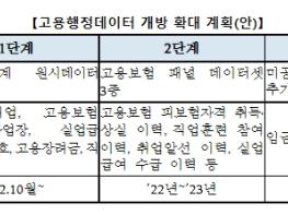 아울러 그간 자치단체나 연구기관 등에서 공개 요청 수요가 많았던 고용보험 취득?상실 이력 정보(취득 및 상실일, 상실 사유 등), 고용보험 피보험자격 이력과 직업훈련?취업알선?실업급여 수급 이력을 연계한 데이터 등도 고용보험 패널 3종 데이터셋으로 구축해 연구자 등이 이용할 수 있도록 할 방침이다. 또한 임금 등 국민이 궁금해하지만 아직 공개하지 않은 정보에 대해서도 전문가 의견수렴 등을 거쳐 단계적으로 개방범위를 확대해 나갈 계획이다.
