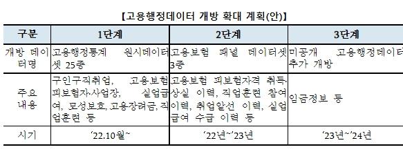 이의 일환으로 고용부는 10월부터 구인·구직·취업 등 각종 행정통계를 제공하는 데 활용한 25종의 원시데이터셋을 개방할 방침이다.