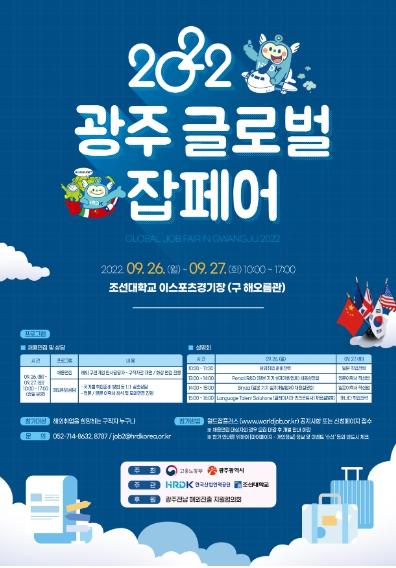 [중앙뉴스라인, 장성대기자] 고용노동부와 광주광역시가 주최하고, 한국산업인력공단과 조선대학교(총장 민영돈)가 주관하는 ‘2022 광주 글로벌 잡페어’가 9월 26일 조선대학교 이스포츠경기장에서 개최됐다.