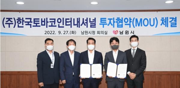 남원시는 9월 27일 ㈜한국토바코인터내셔널과 남원일반산업단지에 대한 신규 투자협약을 체결하고 투자유치를 확정지었다.