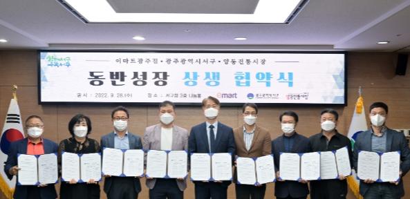 이날 협약식에는 김이강 서구청장, 김세민 이마트광주점장을 비롯해 양동시장 상인회 정성민 부회장, 양동복개상가 유경임 상인회장, 양동닭전길시장 김장호 상인회장, 양동수산시장 양선관 관리소장, 양동건어물시장 이명근 상인회장, 양동산업용품시장 박병기 상인회장, 양동경열로시장 최규웅 상인회장이 참석했다.