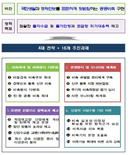 이에 조달청은 공급망 패러다임의 변화를 반영하고, 국민생활과 경제안보를 보다 안정적으로 뒷받침하기 위해 4대전략 16개 추진과제로 이루어진'조달청 비축정책 추진방향'을 마련했다.