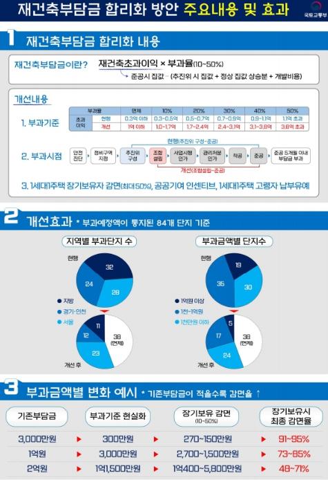 [중앙뉴스라인, 장성대기자] 국토교통부는 ?국민 주거안정 실현방안?의 후속조치의 일환으로 9월 29일 ?재건축부담금 합리화 방안?을 발표하였다.