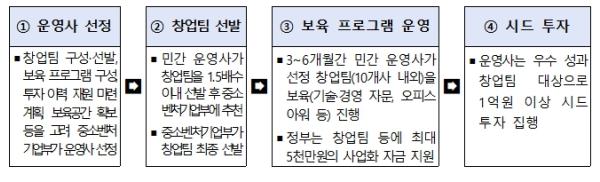 시드 투자를 이미 유치한 창업기업 대상으로 기술개발 자금, 해외진출 자금 등을 집중 지원해 기업의 후속 투자 유치를 유도하는 스타트업 TIPS(Tech Incubator Program for Startup) 이전 단계 지원의 성격을 가진다.