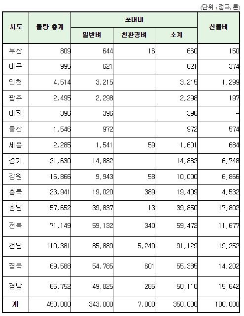 이번 매입검사는 공공비축 벼와 시장격리곡 검사로 검사물량이 증가된 만큼 가용 검사관과 검사장소를 최대한 활용하여 연내에 마무리할 계획이다. 또한 마을별·농가별로 검사 일정을 조정하여 농가의 출하 대기 시간을 최소화하고, 농가의 출하 편의 제고를 위해 소형 포대벼(40kg)에서 대형 포대벼(800kg) 검사로 지속적으로 전환할 예정이다.