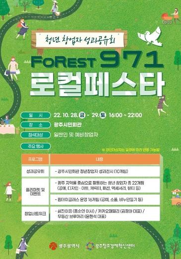 [중앙뉴스라인, 김용범기자] 광주광역시는 28일부터 29일까지 광주시민회관 1층 복합문화공간에서 청년창업 지원사업의 활동성과를 공유하는 ‘2022년도 광주시민회관 청년창업 지원사업’ 성과공유회를 개최한다.