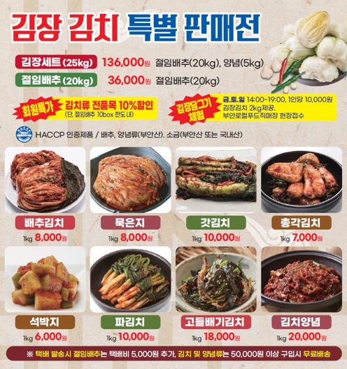 [중앙뉴스라인, 정영철기자] 부안군은 본격적인 김장철을 맞아 11월 1일부터 11월 30일까지 한달간 부안로컬푸드직매장에서 ‘김장김치 특별 판매전’을 열고, 김장세트와 김치류 및 각종 김장재료를 판매할 계획이다.