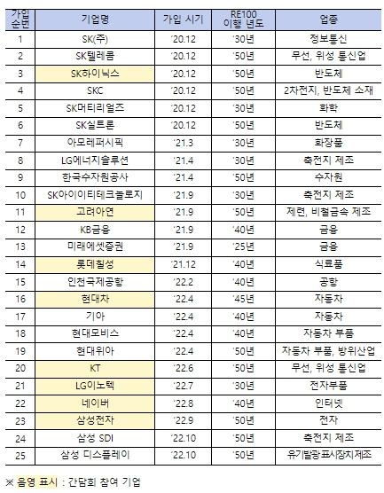 이날 간담회에서 한화진 장관은 김수진 삼성전자 부사장, 김동욱 현대자동차 부사장, 김기준 고려아연 부사장, 김형수 SK하이닉스 부사장, 장학영 롯데칠성 전무, 임동아 네이버 이사, 김무성 KT 실장, 박영수 LG이노텍 안전환경담당을 만나 이들 참여 기업의 재생에너지 확보 방안과 어려운 점에 대해 의견을 들었다.