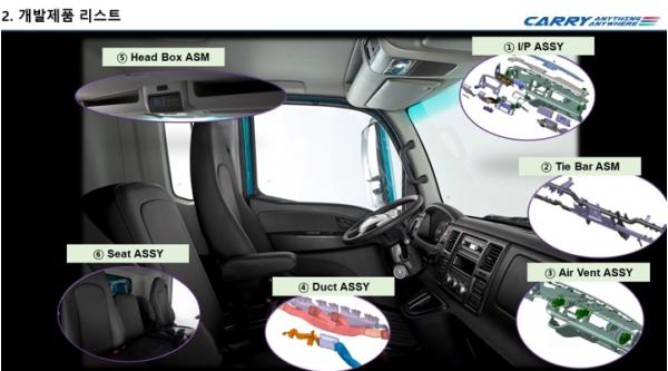 사업 첫해인 올해는 투자기업 공모 선정 결과 타타대우상용차(주)가 선정됐으며 군산 7개, 김제 5개의 부품업체가 운전석 정면 계기판, 공기배출구 등 상용차 부품 6종을 개발하고 있다.