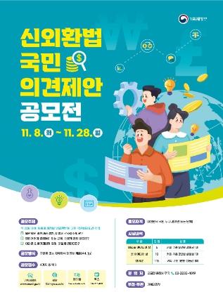 [중앙뉴스라인, 장성대기자] 기획재정부는 외환제도 전면개편 작업을 추진하면서 국민들이 외환거래시 현장에서 경험하는 불편·애로사항을 듣고 개선과제를 발굴하기 위해 ‘22.11.8일부터 3주간 ‘신외환법 국민 의견제안 공모전’을 개최한다.