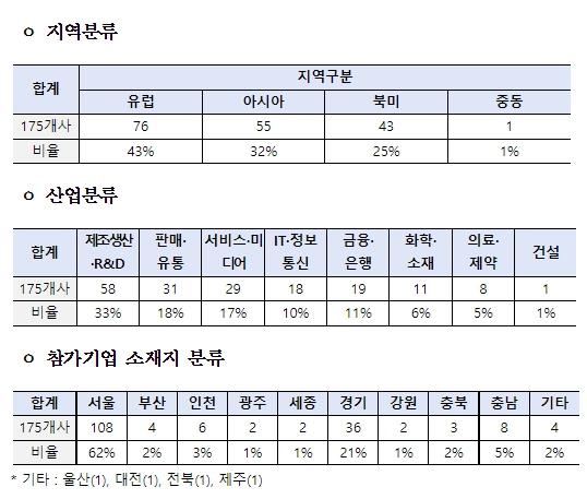 올해에는 역대 최대 규모인 175개 기업이 참가하고, 특히 한국씨티은행(Citi Bank), 한국바스프(BASF), 한국3M 등 국내에 잘 알려진 글로벌 기업뿐 아니라, 최근 부상하고 있는 미래첨단산업 분야인 IT?반도체?바이오 분야에서 어플라이드 머티어리얼즈 코리아(Applied Materials), 에퀴닉스코리아(Equinix), 브이엠웨어코리아(VMware), 싸이티바(Cytiva) 등 우수한 글로벌 기업들이 참여하고 있다.