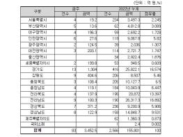 지역업체만 참여할 수 있는 지역제한 입찰은 40건(637억 원)이고,지역업체와 의무적으로 공동수급체를 구성해 참여하는 지역의무 공동도급공사는 20건(988억 원 상당 지역업체 참여 전망)이다.