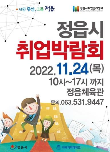 시는 오는 24일 정읍체육관(실내체육관)에서 ‘2022 정읍시 취업박람회’를 열고, 지역 내 우량기업과 구직자들 간 대면 만남의 장을 마련한다.