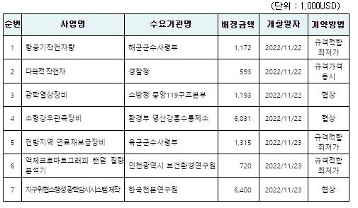 조달청, 외자분야 주간 입찰동향 (2022.11.21. ~ 11.25.)
