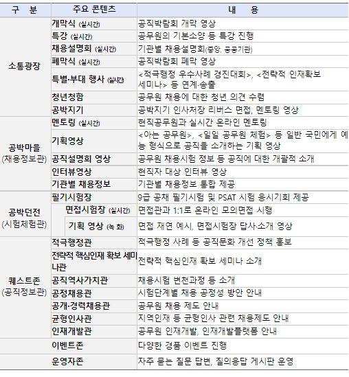 중앙행정기관과 지방자치단체, 공공기관 등 70여 개 기관이 참여하는 이번 공직박람회는 시간과 공간의 구애가 없는 온라인에서 진행된다.