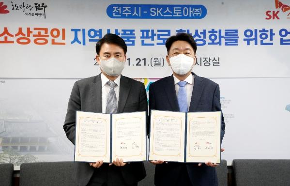 이날 협약에 따라 시와 SK스토아는 가지고 있는 자원을 기반으로 전주지역 기업이 생산하는 상품의 경쟁력을 높이고, 지역 상품의 홍보와 유통채널 연계 협력에 힘쓰기로 했다.