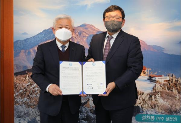 무주군은 2일 군수실에서 무주군과 풀무원다논(주)가 천마농축액첨가제품 생산을 위한 신제품 생산에 따른 원료 조달을 위한 업무협약을 체결했다.