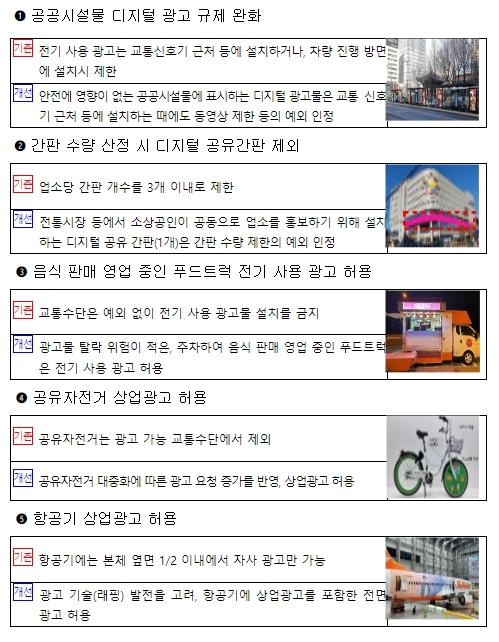 이번 개정안은 소상공인 지원, 옥외광고 산업 진흥 및 경제 활성화 등을 위해 옥외광고 규제를 완화하고자 마련됐다.