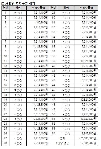 추가로 196명에 대한 조사를 진행하고 있어 부정수급 적발 규모는 더욱 증가할 것으로 예상된다.