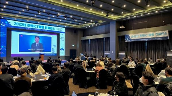 전주시와 전주정보문화산업진흥원(원장 이영로)는 15일 그랜드힐스턴호텔에서 이기동 전주시의회 의장과 이영로 전주정보문화산업진흥원장, 박광진 전북ICT융합발전포럼 회장 등 산·학·연·관 관계자 120여 명이 참석한 가운데, 지역ICT분야 기업들의 정보교류와 소통의 장인 ICT산업 ‘2022 전북 ICT융합 컨퍼런스’를 개최했다.