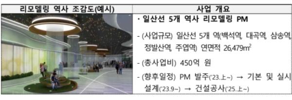 철도공단은 일산선 5개 역사(백석역 등)에 대한 리모델링 사업을 PM이 통합 관리하도록 할 계획이며, 이를 통해 개별 역사들의 리모델링 사업이보다 효율적으로 관리될 수 있을 것으로 기대된다. 이외에도, 사업관리자 역량을 활용하여 역사 내 범죄예방 세이프티존, 감염병 예방 위생설비, 우수유입 방지장치 등 안전설비 최적 배치방안을마련하고, 안전한 지하 교통환경을 구축해 나갈 계획이다.