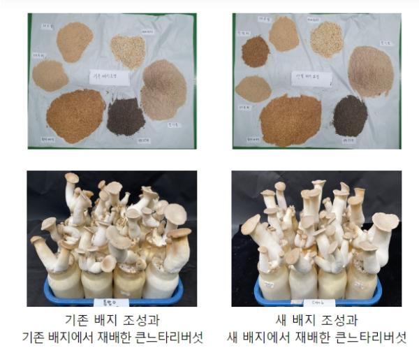 연구진은 기존 큰느타리버섯 배지에 많이 쓰이지만, 가격이 비싼 콩깻묵(대두박)과 밀기울 첨가량을 줄이는 대신 옥수수 배아박 양은 늘리고 단백피를 새롭게 첨가해 배지를 만들었다.