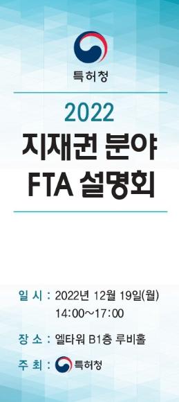 [중앙뉴스라인, 장성대기자] 특허청은 12월 19일 오후 2시부터 엘타워(서울 서초구)에서 해외에 진출해 있거나 진출을 희망하는 우리 기업 관계자, 지식재산 전문가 및 일반인을 대상으로 '2022년 지재권 분야 자유무역협정(‘FTA’) 설명회'를 개최한다고 밝혔다.