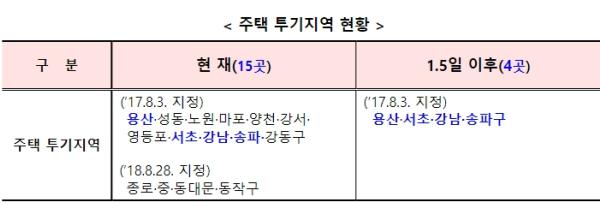 강남 3구(강남·서초·송파) 및 용산구 제외 모든 지역을 투기지역에서 해제