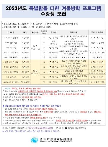 광주학생교육문화회관, 겨울방학 특강 운영