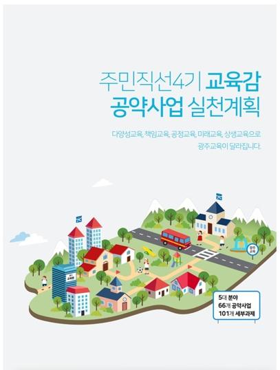 한편 시교육청은 지난 7월부터 선거공보물, 광주시교육감직인수위원회 보고서를 바탕으로 혁신적 포용교육 추진단 및 관련 부서의 검토, 경청간담회 등 다양한 주체와의 현장 소통을 거쳐 공약실천계획 초안을 마련했다. 이를 모든 시민에게 공개해 절차적 타당성 확보와 민주성 확보에도 노력했다.