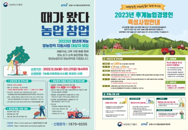 청년후계농 영농 정착 지원사업은 영농 초기 소득이 불안정한 청년후계농에게 최장 3년간 월 110만 원의 영농 정착 지원금을 바우처 카드 형식으로 지급하는 사업이다.