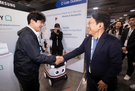 강 시장은 삼성전자 관계자로부터 ‘삼성 C-랩 사업’ 전반에 대한 설명을 듣고 ▲자율주행 로봇업체 ‘뉴빌리티’ ▲메타버스 콘텐츠제작 3D 디자인 SW ‘엔닷라이트’ ▲전자약 플랫폼 개발 ‘셀리코’ ▲메타버스 콘서트 플랫폼 ‘폴카믹스’ 등 CES 2023에 참가한 청년 대표들을 만나 ‘스타트업 생태계 조성’에 대해 의견을 나눴다.