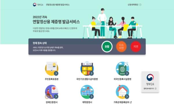 [중앙뉴스라인, 장성대기자] 정부24 전용창구를 통해 2022년 귀속 연말정산에 필요한 주민등록등본 등 5종의 증명서를 간편하게 발급받을 수 있게 된다.