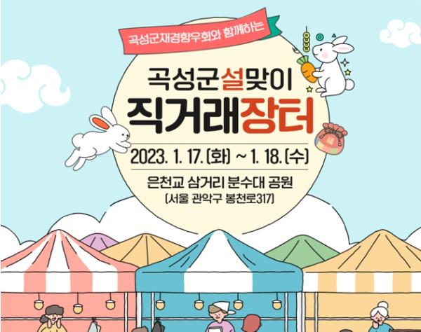 [중앙뉴스라인, 송상교기자] 곡성군이 오는 17일부터 18일까지 서울 관악구에서‘설맞이 곡성군 직거래장터’를 운영한다.