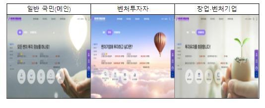 이 밖에도 일반 국민, 벤처투자자, 창업?벤처기업 등 대상별로 관심 분야가 반영된 정보 서비스 화면을 차별적으로 제공함으로써 각자가 원하는 정보를 빠르고 편리하게 검색할 수 있다.