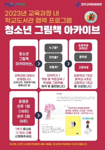 2023년 청소년 그림책 아카이브 참여를 희망하는 학교는 오는 19일부터 2월 3일까지 K-에듀파인 공문을 통해 교육 신청을 하면 된다.