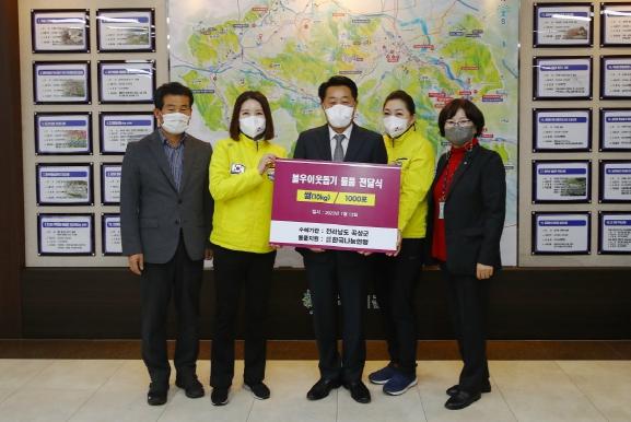 이날 기탁된 백미 1,000포는 곡성군 사회복지시설 22개소와 경로당 313개소에 전달된다.