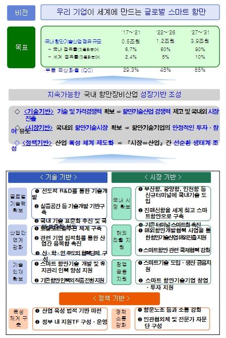 신성장 4.0 전략에 포함된 이번 전략은 우리 기업이 세계에 만드는 글로벌 스마트항만을 비전으로, 2031년까지 국내 점유율 90%, 세계점유율 10% 달성을 통해 향후 5년간(‘22~’26) 우리나라 항만기술산업 규모를 2배(1.2조원), 그 이후 5년간(‘27~’31)은 8배(3.9조원)로 확대시키는 것을 목표로 하고 있다.