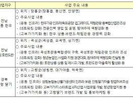 농촌융복합산업지구 조성사업은 지역 내 농축산업 생산(1차), 제조·가공업(2차), 유통 및 체험·관광업(3차)이 집적된 지역을 농촌 융복합 산업 협력 단지(클러스터)로 조성하기 위해 필요한 시설과 장비를 지원하는 사업이다. 이에 따라 농업인, 제조·가공업체, 유통·관광업체 등에게 농촌산업 주체 간 연계·협력, 공동 기반(인프라) 구축, 기술·경영 컨설팅 및 공동 홍보?마케팅 등에 활용할 수 있도록 4년간 총 30억 원(국비 50%, 지방비·자부담 50%)을 지원한다.