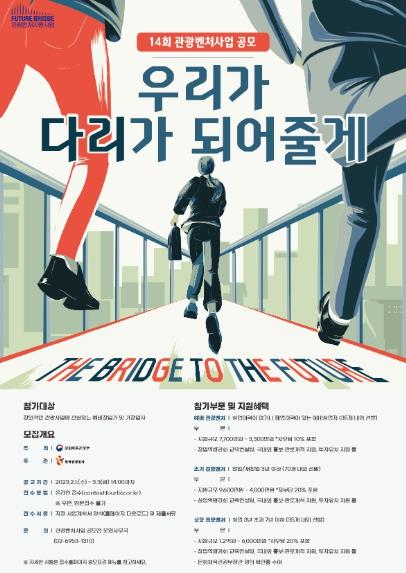 [중앙뉴스라인, 장성대기자] 문화체육관광부는 한국관광공사(사장 김장실)와 함께 2월 1일부터 3월 3일까지 ‘제14회 관광벤처사업 공모전’을 열고 창의적이고 혁신적인 사업 아이디어를 지닌 관광 분야의 예비창업자와 창업기업 140곳을 발굴해 지원한다.