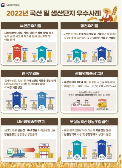이번에 발간하는 우수 국산밀 생산단지 사례집에는 지난해 처음으로 실시한 ‘우수 국산밀 생산단지 선발대회’에서 선정된 생산단지 등 13건의 우수 사례를 수록했다.